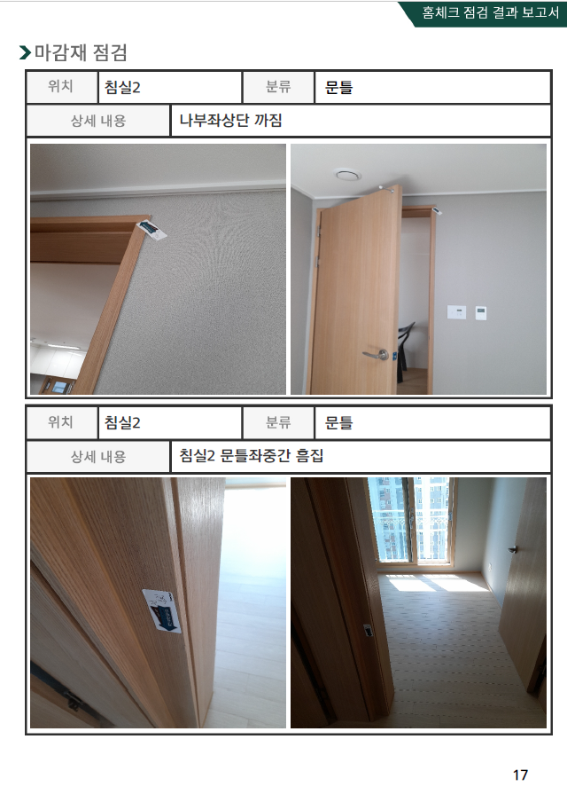 세세한 부분까지 꼼꼼하게 점검해주시기에 믿음직스러웠고 전문가를 통해 한 점검이기에 아파트에 하자보수 요구도 당당히 할 수 있었습니다.